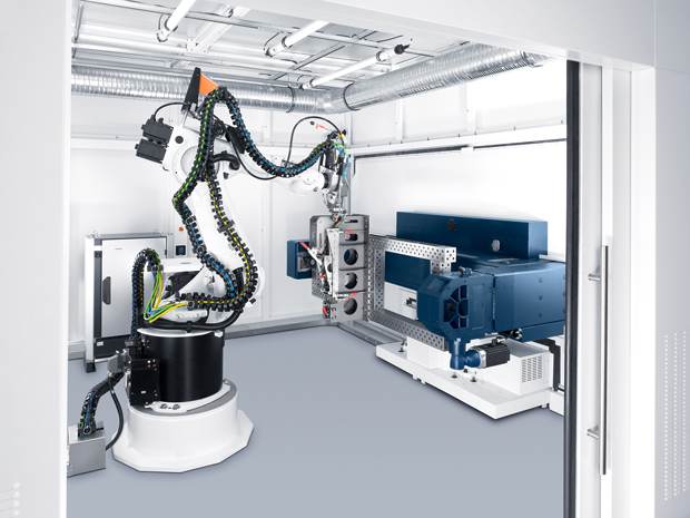 Achserweiterungen bis zu 6 m ermöglichen die Fertigung von tailored blanks sowie von sehr komplexen 3D-Teilen. Rundachsen unterstützen einfache Fügegeometrien.