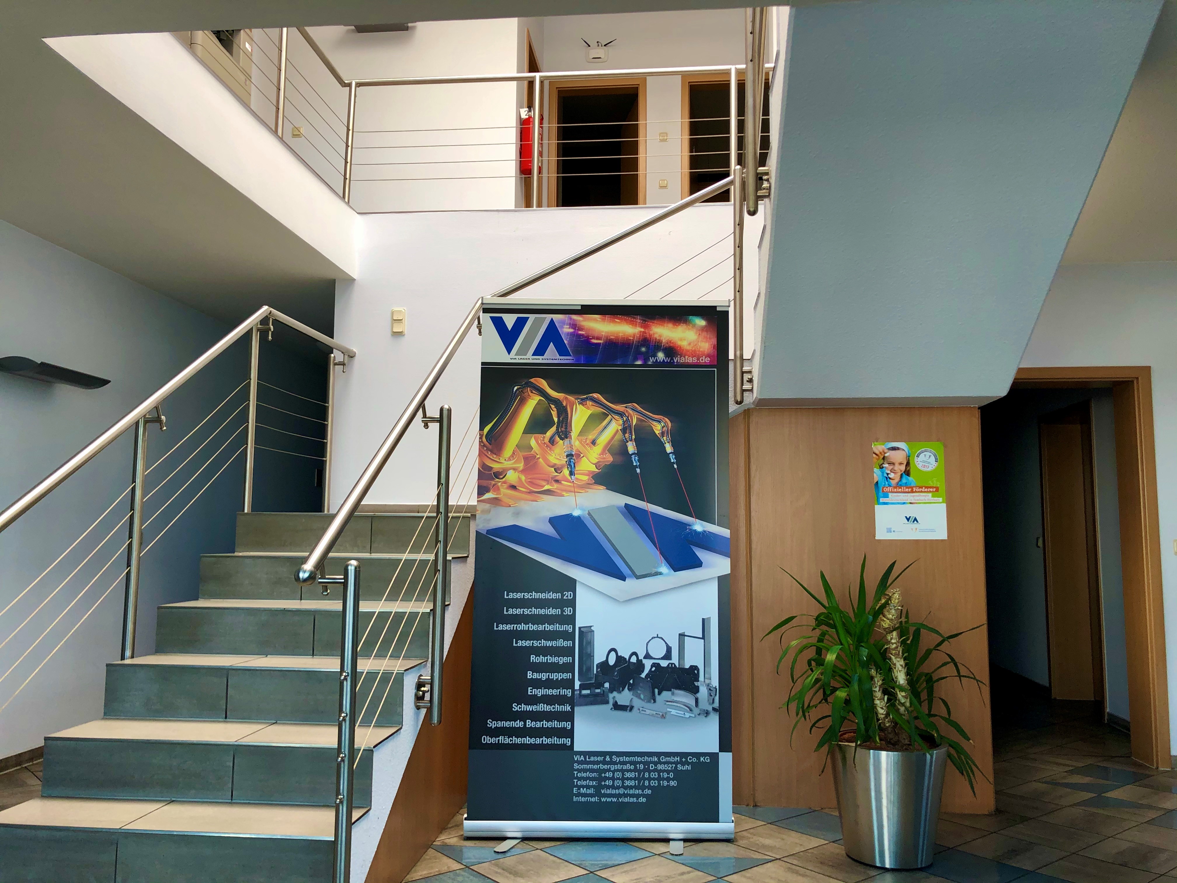 Die VIA Laser & Systemtechnik GmbH in Suhl / Thüringen wurde 1998 als Gemeinschaftsunternehmen der VIA „Verbund innovativer Automobilzulieferer“ mit Sitz in NRW gegründet. Heute gehört das Unternehmen Gesellschaftern aus NRW und Bayern. Am ersten Standort in Benshausen in der Nähe von Suhl startete das Unternehmen in gemieteten Gebäuden mit zwei Mitarbeitern. Nach der ersten Wachstumsphase zog das Unternehmen Ende 2000 in eigene, moderne Gebäude in das Gewerbegebiet Suhl-Friedberg. Im Jahr 2004 wurde die Produktionsfläche um zwei Hallen erweitert, so dass heute gut 4000 qm Produktionsflächen zur Verfügung stehen.